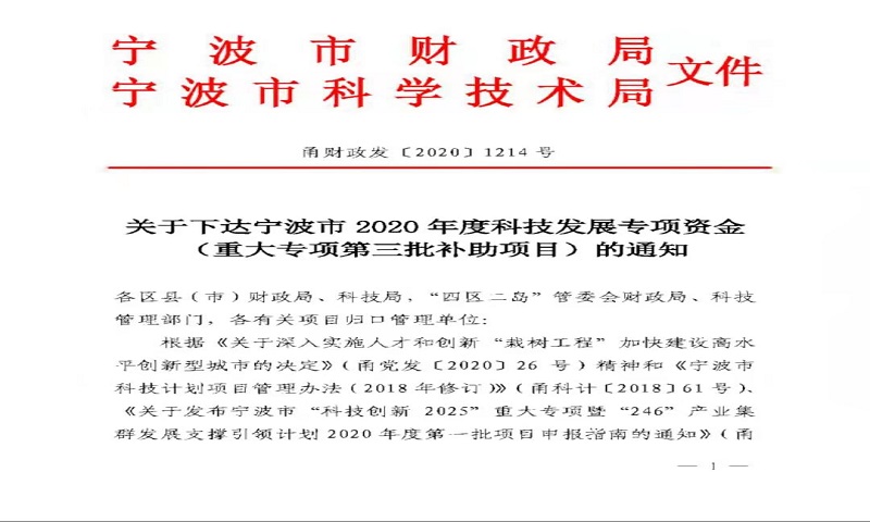 寧波維科新能源《高安全高比能動力鋰離子電池的開發》項目獲寧波市2020年度“科技創新2025”重大專項立項