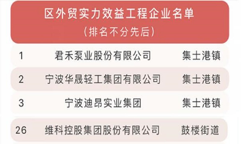 維科集團榮獲海曙區外貿實力效益工程企業20強
