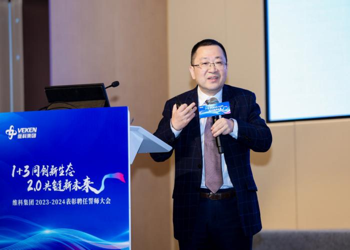 戰略是連接“組織現狀”與“未來目標”的橋梁,是集團發展規劃與資源配置的行動綱領。會上,集團董事長何董作《2024年維科集團綠色能源科技戰略生態》宣貫。何董從戰機、能力、團隊,聚焦新能源、突破新項目,構建綠色能源戰略生態,人成事、事成人等方面對集團綠色能源科技戰略生態進行了詳細闡述,指出1+3責任人及項目團隊肩負著八大集團級重點項目的重任,這是對執行力的考驗,更是集團戰略落地的決定性一步。在推動項目的過程中,何董期待更多的2.0、3.0團隊能夠如雨后春筍般涌現。這些項目的成功將促成集團戰略生態的形成,打造一個充滿活力、協同發展的生態系統,讓集團的各項業務在這個生態中相互支持、共同成長。