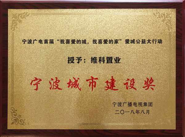 2018年8月16日,由寧波廣播電視集團主辦的“愛城公益盛典”在寧波大劇院隆重舉行。作為寧波新時代的建設者,寧波維科置業在頒獎盛典中,被授予“寧波城市建設獎”。