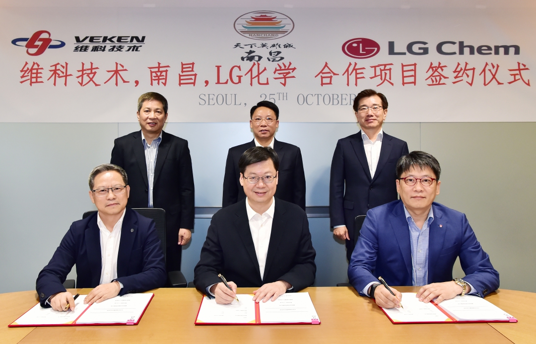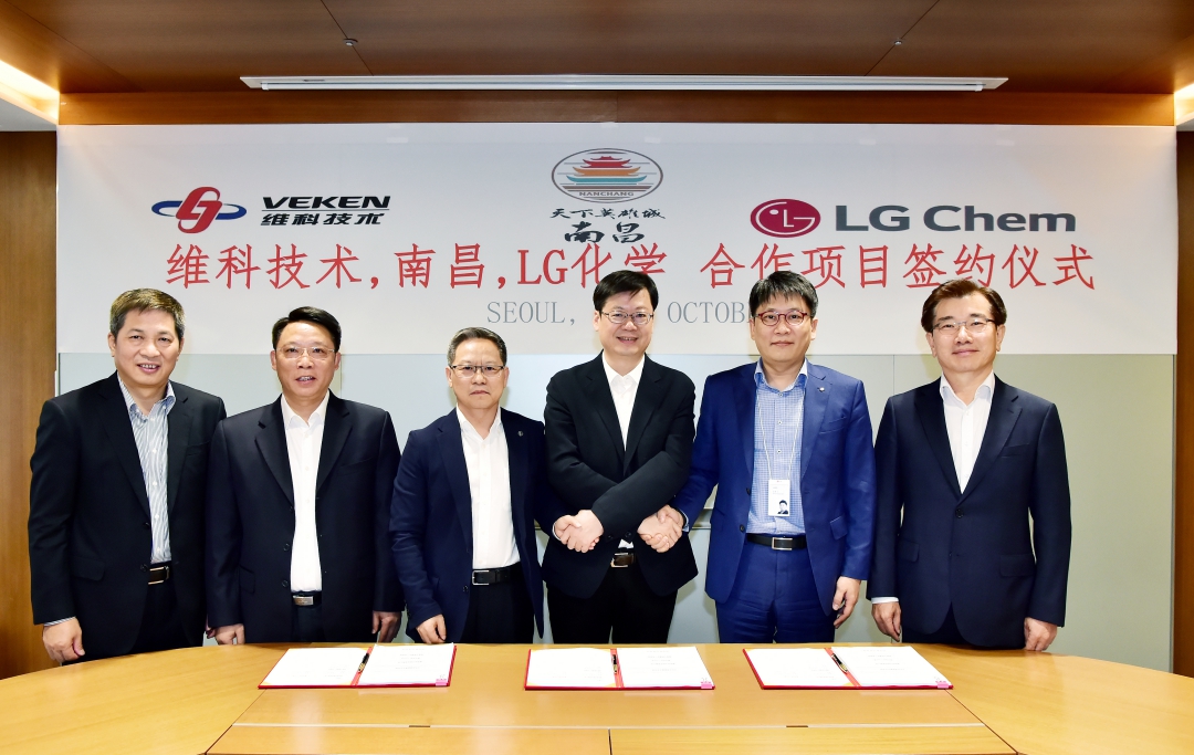 10月25日,維科技術股份有限公司(簡稱“維科技術”,證券代碼:600152)與韓國株式會社LG化學、南昌市新建區政府簽署合作協議,三方共同出資在南昌市新建區設立中外合資企業,從事小型聚合物鋰電池的研究開發、生產及銷售。維科技術董事長何承命、江西省南昌市市長劉建洋、LG化學本部長金鐘現出席簽字儀式并先后致辭表示祝賀,維科技術總裁楊東文、南昌市新建區區長陳吉煒、LG化學小電池事業部長金東明在合作協議上簽字。南昌市政府有關領導、LG化學電池事業部有關負責人、維科技術監事長陳國榮、副總裁陳良琴等也出席了簽字儀式。