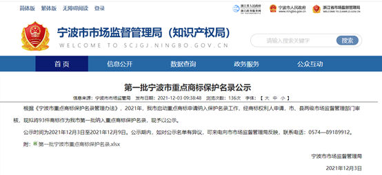 「寧波市重點(diǎn)商標(biāo)保護(hù)名簿管理方法」の関連規(guī)定によると、重點(diǎn)商標(biāo)とは寧波で高い知名度を有し、大きな市場(chǎng)影響力を有し、権利侵害の偽造を受けやすく、保護(hù)を強(qiáng)化しなければならない登録商標(biāo)を指す。市場(chǎng)監(jiān)督管理、公安、検察院、裁判所、稅関などの多部門(mén)が協(xié)力し、重點(diǎn)商標(biāo)の協(xié)同保護(hù)メカニズムを確立し、重點(diǎn)商標(biāo)専用権の保護(hù)に力を入れる。それに、名簿中の商標(biāo)の國(guó)際登録と保護(hù)を保護(hù)するため、商標(biāo)警報(bào)、専門(mén)家とのコンサルティング、法律政策の解読、海外の権利維持支援などのサービスを提供する。