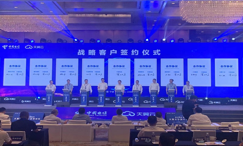 世界デジタル経済大會第十二回SCEは2022年9月2日に寧波で開催され、ハイテク雲羿開発プロジェクトは招待者として出展した。この間、副総裁の馬東輝は維科集団を代表して、チャイナテレコム(寧波)と寧波朗豪グランドホテルで雙方の戦略提攜に関して正式的に署名し、雙方は去年の「5G+工業インターネット」というハイテク雲羿開発プロジェクトの応用及び示範を基づいて、更に深く、広く全面的な提攜を展開していく。